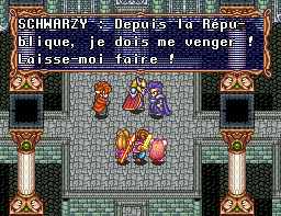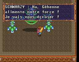 Schwarzy se transforme en monstre (il semble) et nous attaque. Le chasseur dont on parle est un petit monstre minable que nous avons détruit dans Tasnica, denier rempart de la République. (Au fait, mon héros s'appelle AAAAAA, désolé)