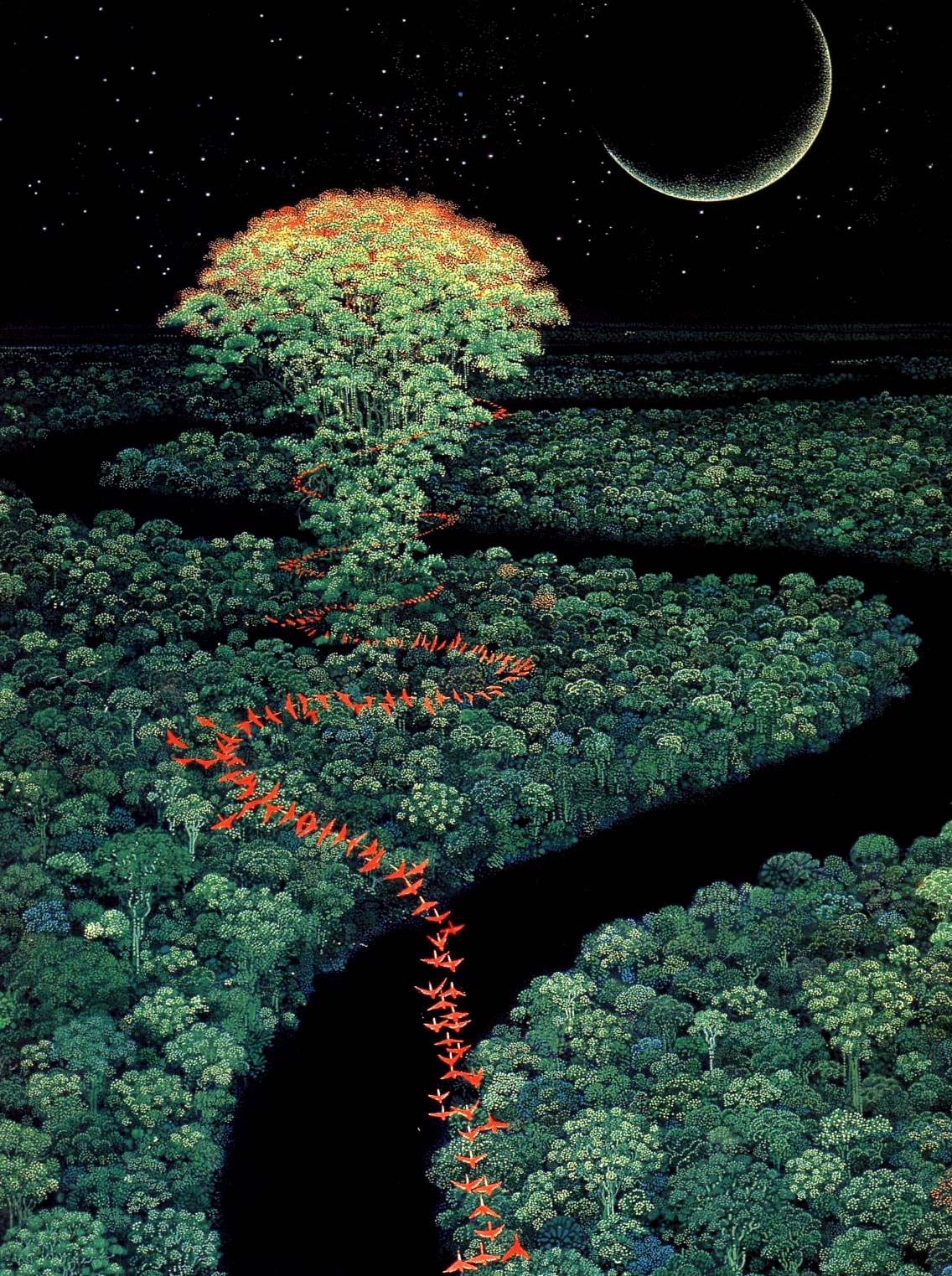 Ce dessin je l'aime bien. Vous savez pourquoi ? Parce qu'il représente l'Arbre Mana dans la foret de Puritas, en couleur, chose que j'aurais été bien incapable de réaliser moi-même.