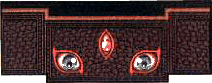 Des ténèbres s’abattirent sur les trois enfants. Lorsqu’elles s’apaisèrent, ils ne se trouvaient plus dans la grande salle du temple, mais dans un couloir. Et sur le mur du fond, étaient dessinés deux yeux. De l’autre côté, toujours au fond, il y avait des piquants, placés sur le mur, la pointe vers la pièce. Il ne valait mieux ne pas s’appuyer dessus. Une voix s’éleva dans la salle. Celle de Thanatos :